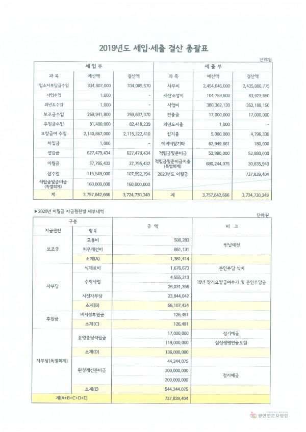 2019년도 평안전문요양원 세입세출 결산서 페이지 정보 작성자 김재홍 작성일20-03-25 15:55 조회1,635회 댓글0건 관련링크 본문 2019년도 평안전문요양원 세입세출 결산서 입니다. 댓글목록 등록된 댓글이 없습니다. 이전글 다음글 목록